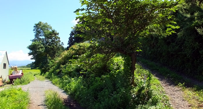 「異聞録」によれば、南部奥瀬判九郎が油川に下って油川城の代官になったといわれています。取材のため油川城があったといわれる場所へいったのですが現在、油川城の痕跡はほとんどなく畑になっていました。近隣の住民に話を聞いてみた結果、土塁の跡を確認することができました。油川城は水田との比高10m程の低丘陵に築かれているため、遠くから見ると城のあった場所であったと認識できます。